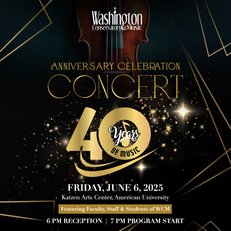 Join us for an unforgettable evening as we celebrate the 40th Anniversary of the Washington Conservatory of Music! This milestone event will showcase the incredible impact of music education, featuring live performances, inspiring stories, and opportunities to support the future of music.
