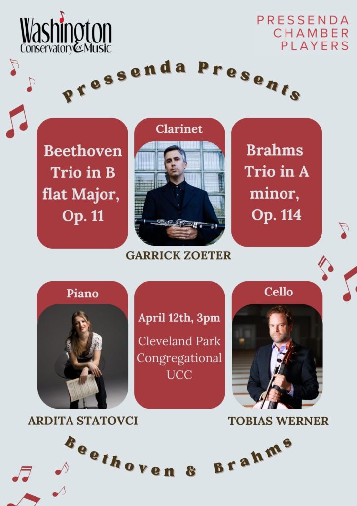 The Washington Conservatory of Music and the Pressenda Chamber Players invite you to an afternoon of timeless chamber music. Enjoy powerful performances of two masterful trios: