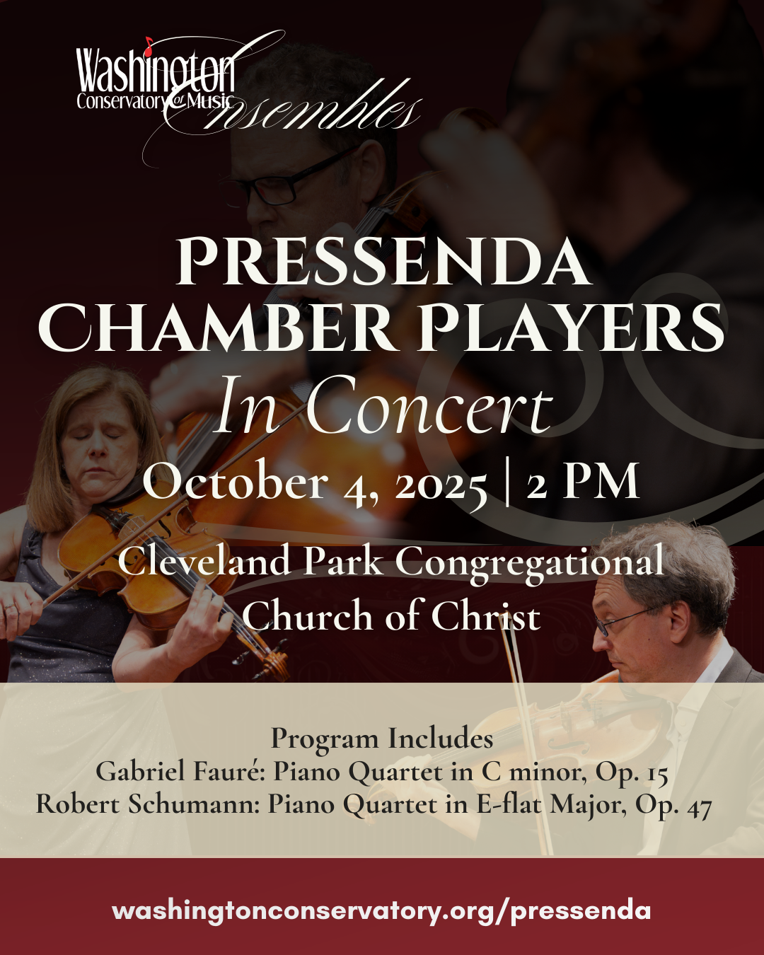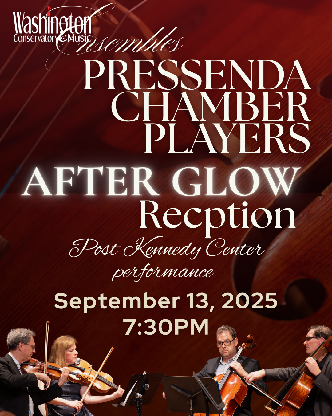 RSVP RSVP Join the Washington Conservatory of Music for an unforgettable evening of chamber music as the acclaimed Pressenda Chamber Players make their debut at the prestigious Kennedy Center’s Millennium Stage. Composed of strings, piano, and distinguished guest artists, Pressenda Chamber Players celebrates its 10th anniversary season.Pressenda Chamber Players, the Washington Conservatory Ensemble in Residence, […]