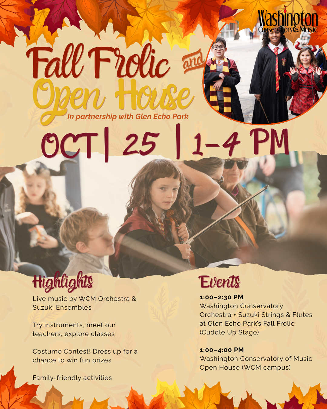 Let's celebrate the season with music, costumes, and community at the Washington Conservatory of Music’s Fall Frolic & Open House, presented in partnership with Glen Echo Park. A delightful afternoon of […]